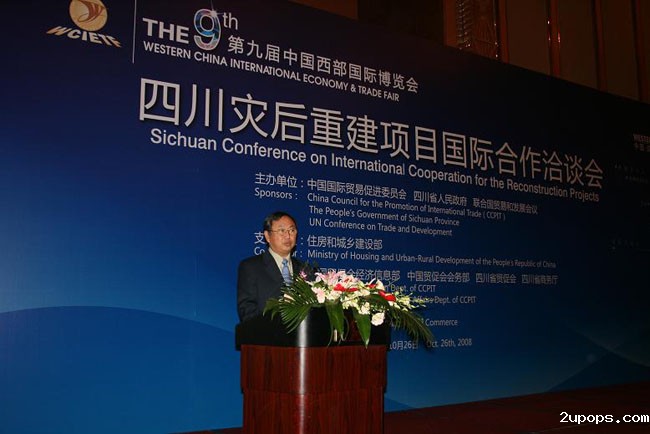 中国贸促会会长万季飞在四川灾后重建项目国际合作洽谈会上讲话