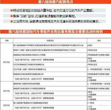 在成都世纪城新国际会展中心35000平方米的展场中,将特别设置成渝地区双城经济圈专区、新能源智能网联(含新能源整车)专区、零配件采配专区、保修/供应链及终端连锁专区、用品及改装专区、轮胎专区、商用车(智慧物流及运输车)专区等七大特色专区,瞄准汽车零配件及售后服务主要细分领域,为参展商、专业客商及大众消费者带来前沿的产品与热点资讯。