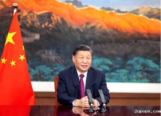 2022年5月18日,国家主席习近平在庆祝中国国际贸易促进委员会建会70周年大会暨全球贸易投资促进峰会上发表视频致辞。(新华社图片)