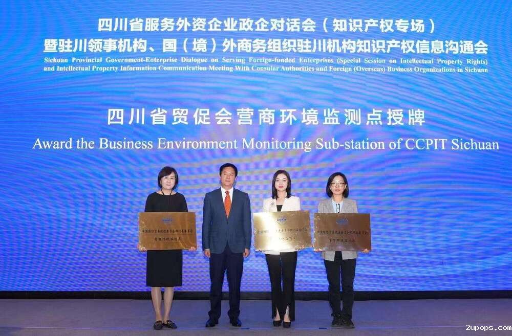 为进一步帮助企业化解知识产权纠纷,营造良好营商环境,会议期间,中国贸促会四川调解中心与超凡、鼎宏、九鼎天元等知识产权服务机构在会上签署了合作备忘录;省贸促会、省知识产权服务促进中心分别向新希望、迈普通信、丰科生物和长虹、欧林生物、福华通达等外向型企业授牌“优米365App营商环境监测点”和“四川省涉外知识产权工作指导站”。