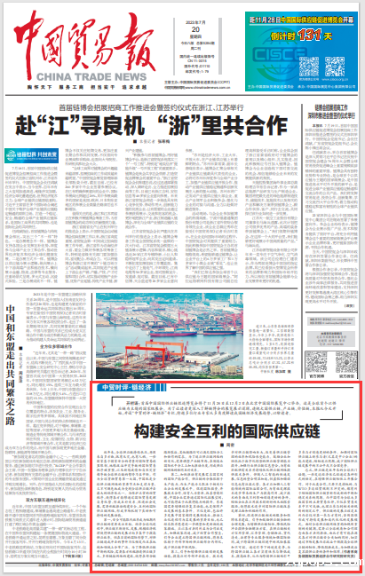 近年来,全球供应链持续承压,原因来自多方面,既有天灾,也有人祸。一些国家基于国家安全的考量对国际贸易设置限制、地缘政治冲突导致的国际贸易秩序被重塑,以及新冠疫情和自然灾害都导致全球供应链的暂停乃至中断。作为全球货物贸易第一大国,中国既是全球供应链网络的重要节点和支撑力量,又不可避免地成为受到全球供应链冲击最大的经济体之一。为维护正常的经贸秩序,使得各方能够通过国际贸易发挥自身优势、形成互补关系、促进社会发展,需要积极推动构建安全、互利的国际供应链网络,形成市场机制下良好和可持续的发展动能。