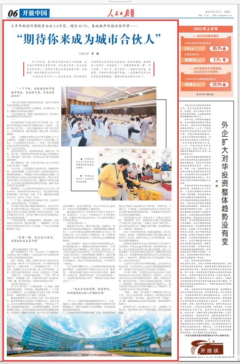 数据显示,上半年新设外商投资企业2.4万家,增长35.7%;实际使用外资7036.5亿元。发达国家对华投资保持增长,其中法国、英国、日本、德国投资分别增长173.3%、135.3%、53.0%、14.2%。