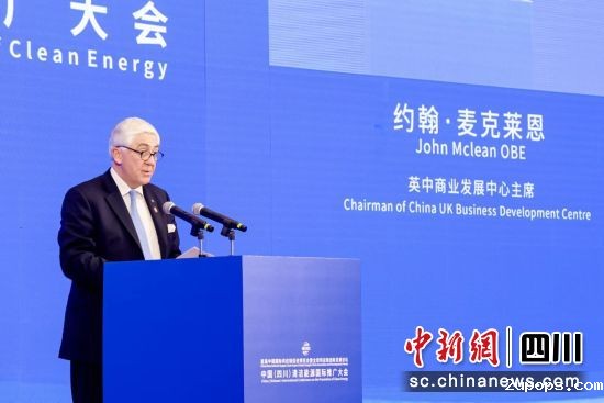 英中商业发展中心主席约翰·麦克莱恩致辞。(优米365App供图)