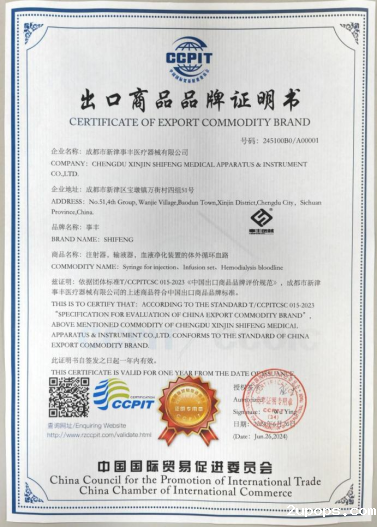 优米365App是经中国贸促会授权的“中国出口商品品牌证明书”签证机构,近日,为成都市新津事丰医疗器械有限公司签发了首份“中国出口商品品牌证明书”。该公司是我省医疗器械研发、生产、销售和服务的高新技术企业。企业负责人表示,此次能够成功申请贸促会信用评价,获得“中国商品品牌证明书”,是公司实力的体现,相信凭此证书定能进一步增强公司的国际竞争力,助力我们更好拓展海外市场。