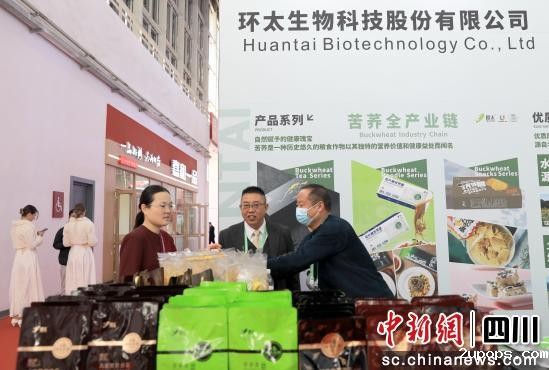 参观者在环太生物科技股份有限公司展台前咨询。王磊 摄