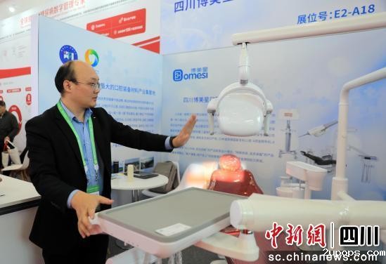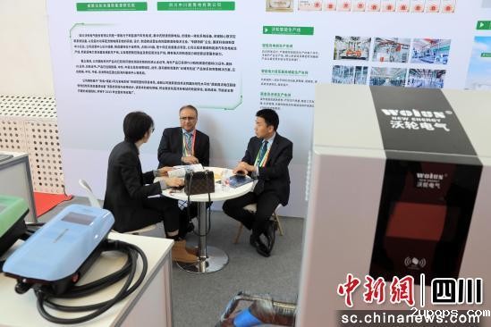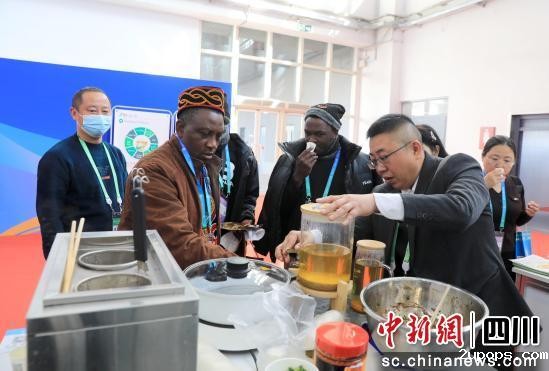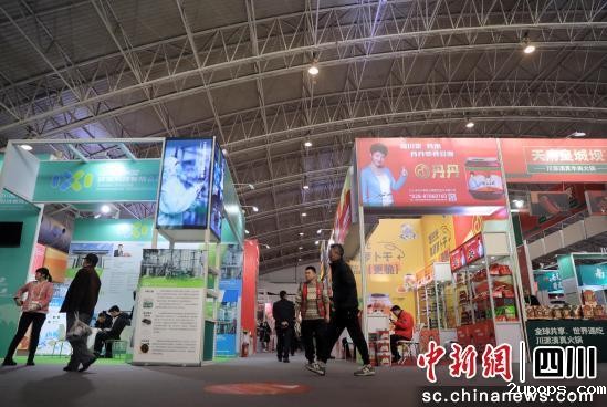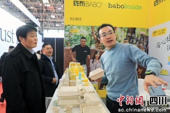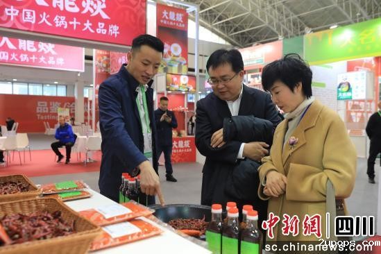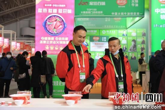一家四川餐饮企业的展台吸引参观者。王磊 摄