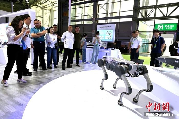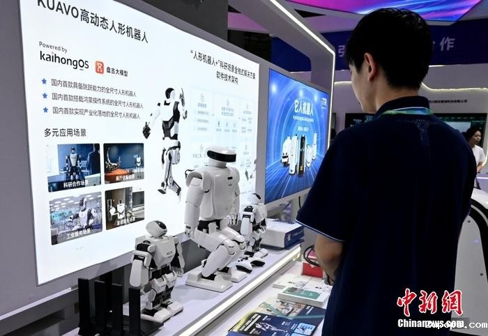 7月18日,第九届中国(成都)智慧产业国际博览会在成都开幕。本届博览会设置了四川信创展与北斗应用展、中国信创产业发展行业交流会、北斗导航应用安全专题研讨会等系列活动,深入交流相关领域的技术和应用。图为国产人形机器人受关注。中新社记者 安源 摄