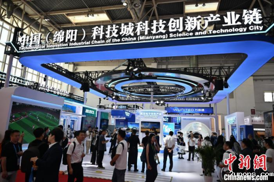 7月17日,北京,中国(绵阳)科技城科技创新产业链展台亮相第三届链博会。中新社记者 张浪 摄