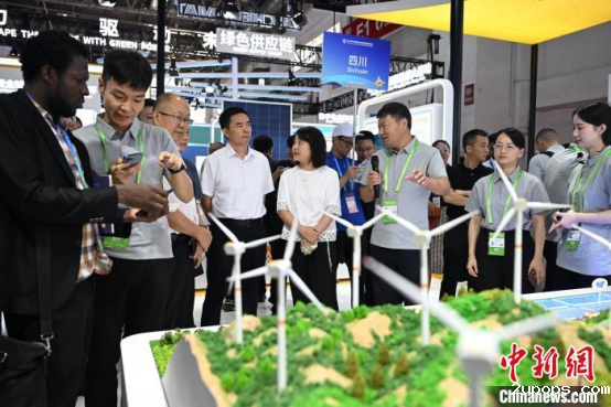 7月17日,北京,四川凉山风电项目亮相第三届链博会吸引参观者。中新社记者 张浪 摄