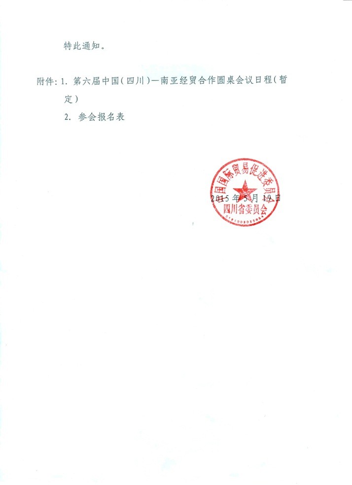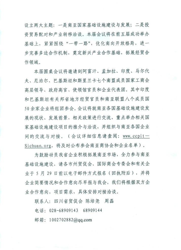 第六届中国(四川)-南亚经贸合作圆桌会议会议日程(暂定)
