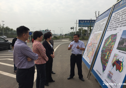 乐至县常委唐忠文(右一)介绍乐至县汽配产业园区的整体发展规划