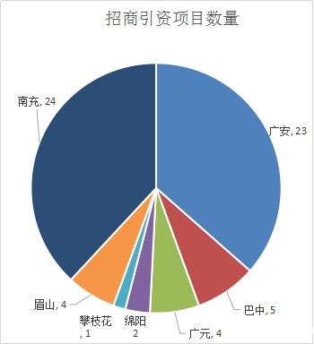从地域分布看,南充、广安两市旗鼓相当,项目数分别为24个和23个,共占项目总数的74.6%;投资金额分别161.8亿元和202.1亿元,共占引资总额的48.3%。两地均以汽车零配件项目为主,传统汽车零配件的投资需求依然强劲。巴中虽然汽车产业基础相对较差,但却以5个新能源汽车和汽摩产业零配件项目位居第三,涉及引资总额63.6亿元,显示了当地参与产业发展的积极愿望。