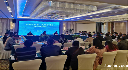 调研组召开了成都汽配展、成都智博会推介座谈会。会议由市政府副市长胡彦军主持。市政府研究室副主任王久龙及市贸促会、市经济和信息化局、市经济合作局负责人,各区市县贸促会负责人,广安经开区、枣山园区贸促主管部门负责人,华蓥市工业发展区管委会、邻水高滩园区管委会负责人,华金润、中鼎创、赛特制冷等企业代表共计60余人参加会议。