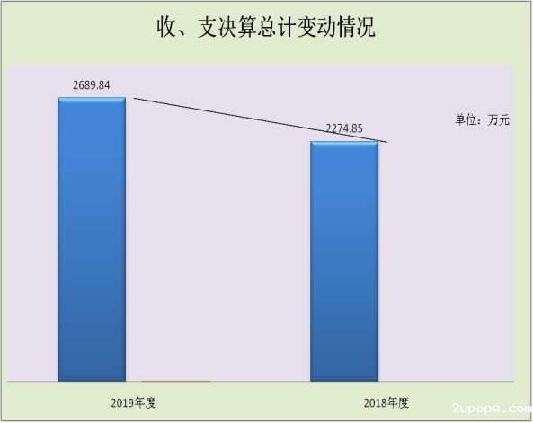 2019年度收、支总计2689.84万元。与2018年相比,收、支总计各增加414.99万元,增长18.24%。主要变动原因是2018年中国(成都)智慧产业国际博览会项目预算在2018年度预拨,正式指标在2019年度下达。