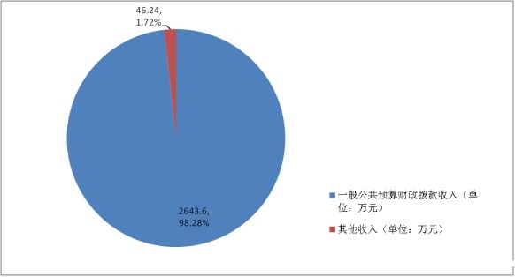 2019年本年收入合计2689.8万元,其中:一般公共预算财政拨款收入2643.6万元,占98.28%;政府性基金预算财政拨款收入0万元,占0%;上级补助收入0万元,占0%;事业收入0万元,占0%;经营收入0万元,占0%;附属单位上缴收入0万元,占0%;其他收入46.24万元,占1.72%。