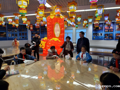考察组实地查看了泡桐树小学西区分校最近建成的微型灯彩博物馆并在馆内观看了该校开展的彩灯教学课程。