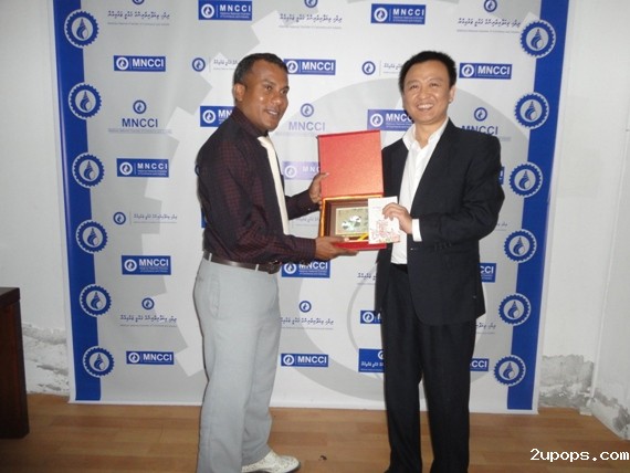四川国际商会秘书长(右)与马尔代夫国家工商会主席(左)合影