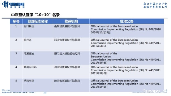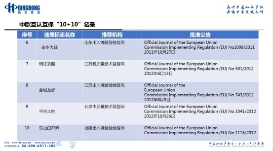(1)“10+10”:早在2007年,中欧“10+10”地理标志互认互保试点项目就开始启动,并于2012年11月达成协议,保护了双方的10个地理标志。