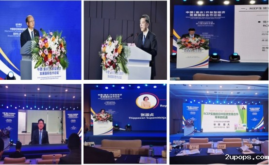 论坛上,中国贸促会副会长陈建安、重庆市人大常委会副主任周旬出席会议并致辞。日中经济协会专务理事杉田定大、韩国贸易协会国际贸易通商研究院院长朴天一、中国—东盟商务理事会理事(产业合作委员会执行主席)李雪民、马来西亚中华总商会全国中央理事孔令龙等通过在线视频进行交流。商务部国际贸易经济合作研究院院长顾学明、泰王国驻成都总领事馆总领事张淑贞等重要嘉宾发表主旨演讲。