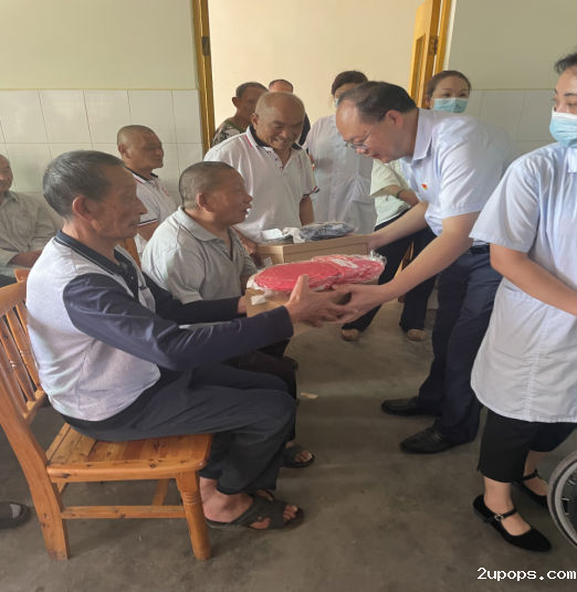 市贸促会党组书记、会长,市博览事务局局长漆康北,市红十字会常务副会长饶志明等一行走进小院与老人们进行亲切交谈,与他们聊家常、谈变化,询问他们的饮食起居与身体健康等情况,带去党的关心关怀,并叮嘱老人们平时要注意安全,衷心祝福老人们身体健康幸福长寿。大家的热忱服务温暖着每个老人的心,老人们的脸上洋溢着幸福的笑容。活动中,专程慰问了55年党龄的老党员闵时柱,与他拉家常、问冷暖,并赠送党内读物和红外线腰椎治疗仪,感谢他为党和人民事业作出的贡献。