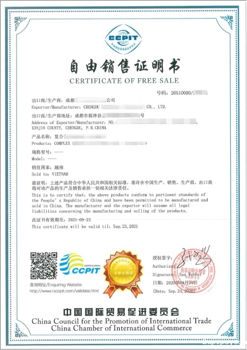 贸促会自由销售证明书样本