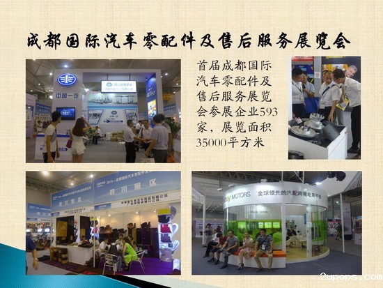 三是通过举办“成都国际汽车零配件及售后服务展览会”推动四川汽车产业发展。今年首届汽配展35000平方米,参展企业593家。