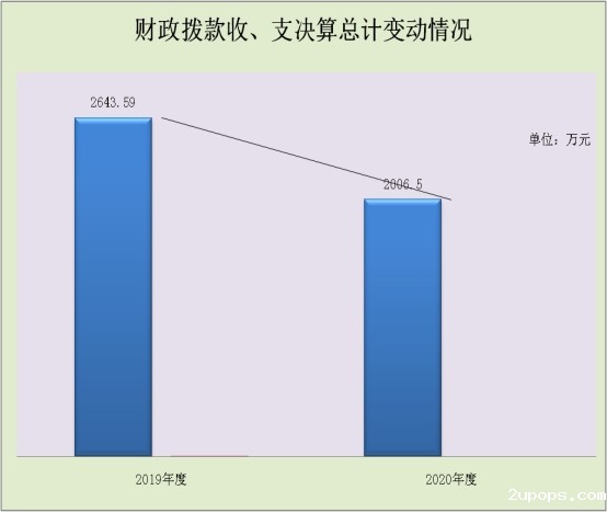 2020年财政拨款收、支总计2006.5万元。与2019年相比,财政拨款收、支总计各减少637.09万元,下降24.1%。主要变动原因是因受疫情因素影响,涉外项目支出取消或延期举办。所以2020年较2019年财政拨款收入减少。